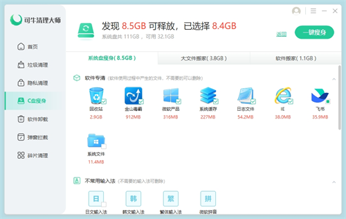 1.存储空间智能释放:采用多维度扫描技术,精准识别系统冗余缓存与临时文件,覆盖上千款常用软件的垃圾清理需求,有效解决C盘空间不足导致的运行迟缓问题。