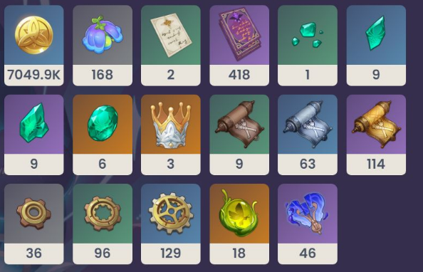 7→8级:需6本「秩序」的哲学、6个奇械机芯齿轮、1个亘古树海之一瞬及26万摩拉