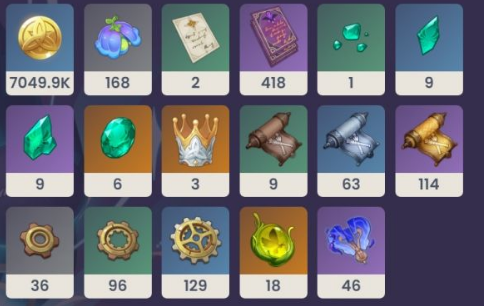 60级突破:80000摩拉+3个自在松石块+8个奇械发条备件·歌裴莉娅+30朵柔灯铃+18个机关正齿轮