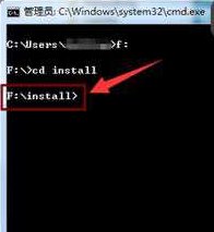 2、进入命令提示符界面后,通过磁盘分区指令切换至目标文件存储位置。假设目标文件存放于F盘install目录,则依次输入F:与cd install两条指令完成路径定位。此过程中需注意保持字符输入的准确性,避免因路径错误导致执行失败。