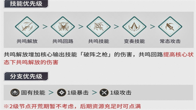 角色战力提升首重技能升级顺序:终极技「共鸣解放」作为核心输出手段需优先满级,其次是被动技「共鸣回路」确保能量循环,再次是主动技「共鸣技能」强化爆发伤害,变奏技能与普攻可根据资源情况逐步提升。建议按此顺序分配技能材料:LV.5共鸣解放→LV.4共鸣回路→LV.3共鸣技能→其他技能均衡发展。